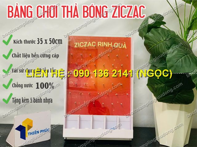Bàn Ziczac để bàn rinh quà là mô hình mini game đang “làm mưa làm gió” trong các chương trình sự kiện, hội chợ, booth quảng cáo và quầy sampling. Với thiết kế nhỏ gọn, kiểu dáng vui nhộn, chiếc bàn giúp thu hút khách hàng, tạo không khí sôi động và mang lại trải nghiệm tương tác cực thú vị cho người chơi.