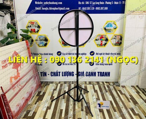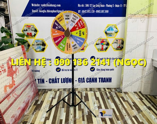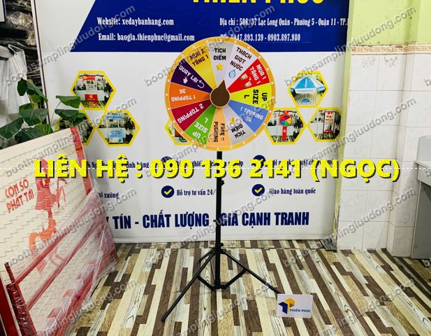 Xưởng Thiên Phúc chuyên sản xuất: vòng quay may mắn, booth sampling, standee khung sắt, xe bán hàng lưu động, dụng cụ quảng cáo sự kiện.