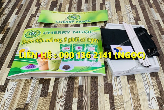 + Phần tấm logo phía trên là 0.3×0.8m chất liệu decal ngoài trời, cắt sát để cán bồi lên bề mặt bàn và tấm logo