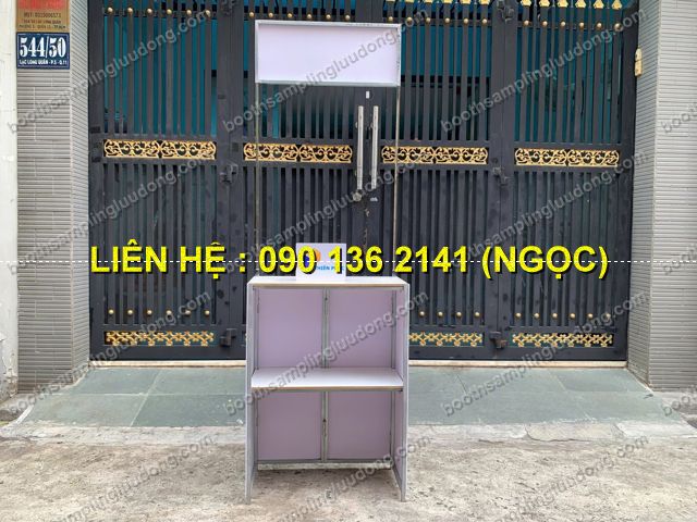 Xưởng Thiên Phúc chuyên sản xuất booth sampling quảng cáo sản phẩm in theo thiết kế riêng, số lượng ít hay nhiều đều nhận. Tùy vào chiến dịch, bạn có thể chọn: