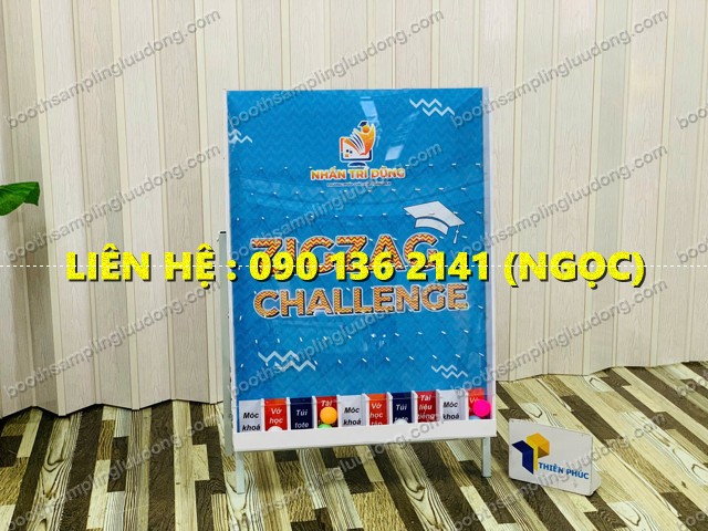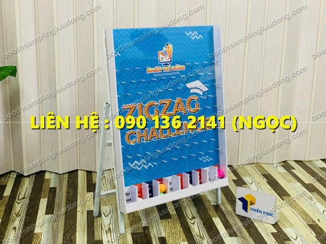 Bảng ziczac để bàn mini có kích thước vừa phải, dễ đặt trên bàn, quầy bán hàng, booth sampling hoặc quầy trưng bày.