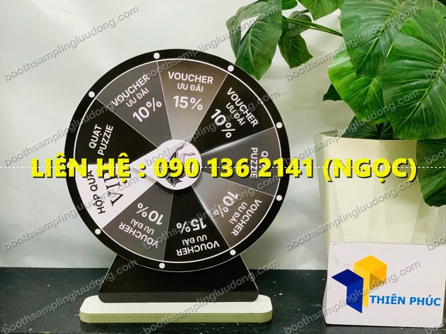 Model : vòng quay sự kiện bằng gỗ - vòng quay thân gỗ trúng thưởng - vòng xoay may mắn chân đế gỗ mini