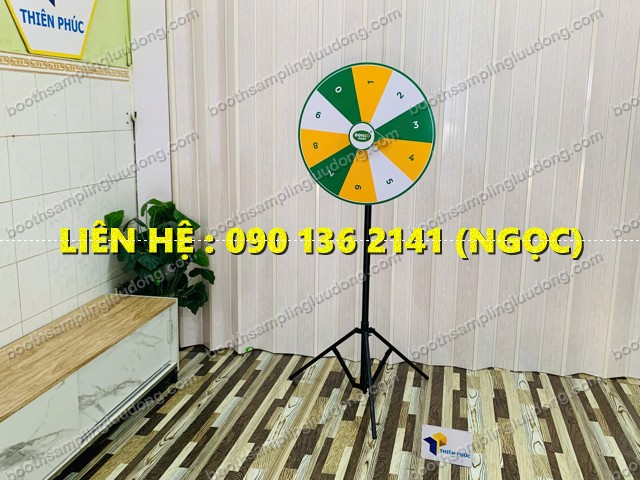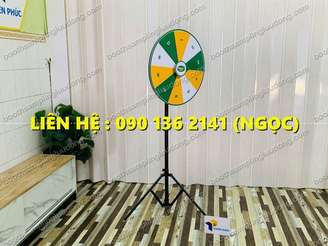 thường sử dụng vòng quay số trúng thưởng chân xếp gọn vì dễ setup và tạo không khí sôi động.