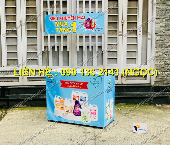 - Quầy lắp ráp sampling siêu thị là dụng cụ trưng bày và phát mẫu thử được thiết kế gọn nhẹ, có thể tháo lắp nhanh chóng và dễ dàng di chuyển. Quầy thường làm bằng nhựa PP cao cấp hoặc khung sắt phủ sơn tĩnh điện, kết hợp với mặt bàn rộng, kệ để sản phẩm, và bảng tiêu đề in logo thương hiệu nổi bật.