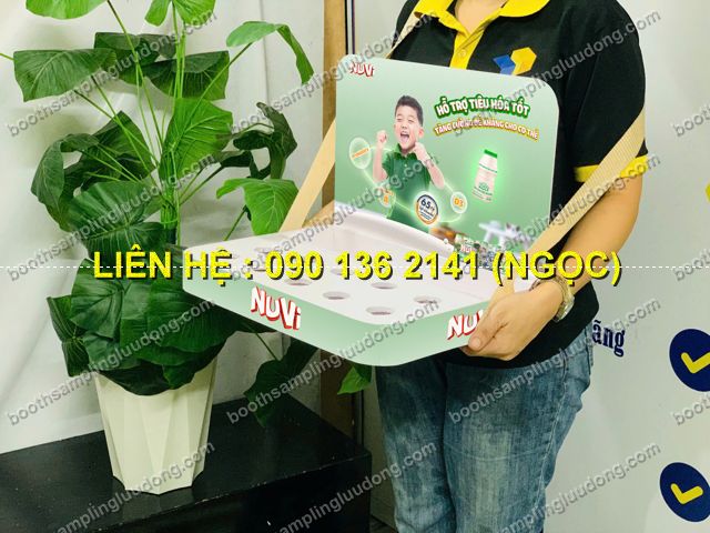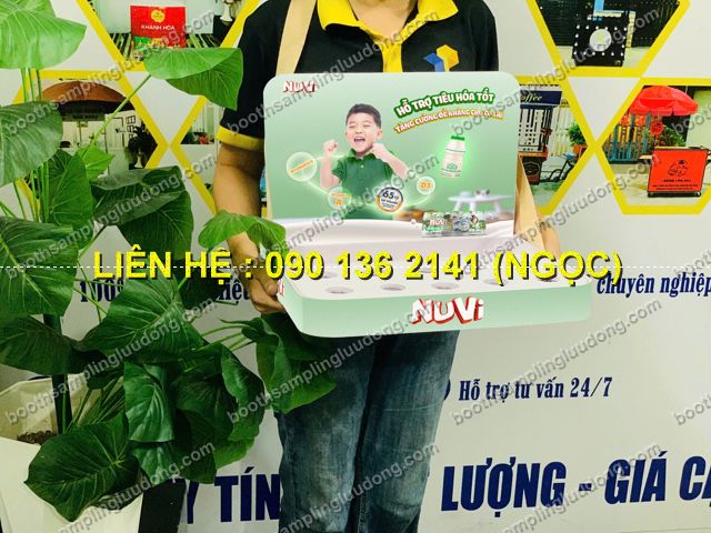 - Với thiết kế gọn nhẹ, dễ mang theo, khay sampling đeo vai giúp nhân viên tương tác trực tiếp với khách hàng, tạo ấn tượng mạnh mẽ và tăng tỷ lệ nhận diện thương hiệu.