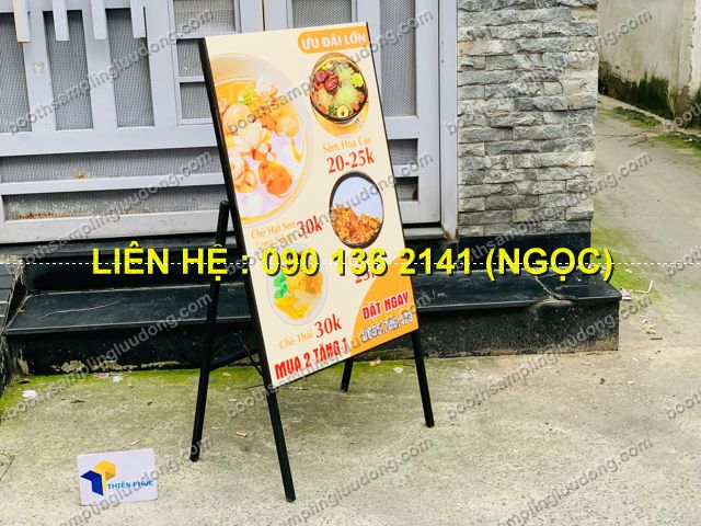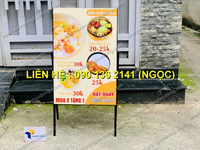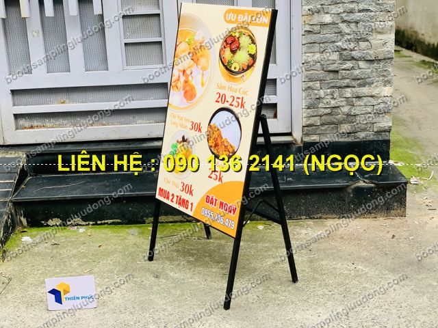 Xưởng Thiên Phúc chuyên sản xuất khung standee sắt, standee chân xếp, standee quảng cáo ngoài trời, standee khung chữ A, standee sự kiện, cam kết: