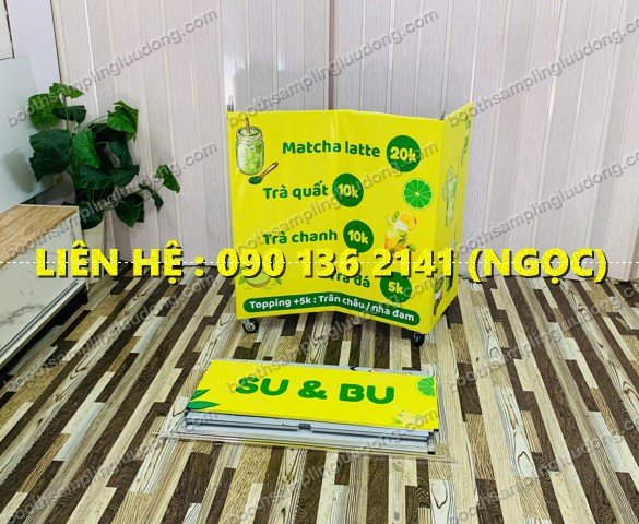 Model : quầy bán trà sữa gấp gọn - tủ pha chế matcha latte lưu động - xe bán hàng di động - tủ bán nước giải khát