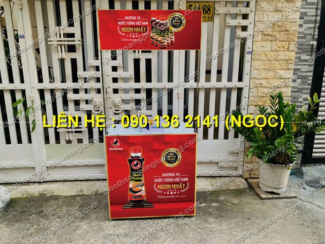 Xưởng Thiên Phúc là đơn vị chuyên thiết kế – gia công – in ấn booth khung sắt, booth nhựa, quầy sampling, standee, vòng quay may mắn, dù quảng cáo, xe bán hàng theo yêu cầu khách hàng.