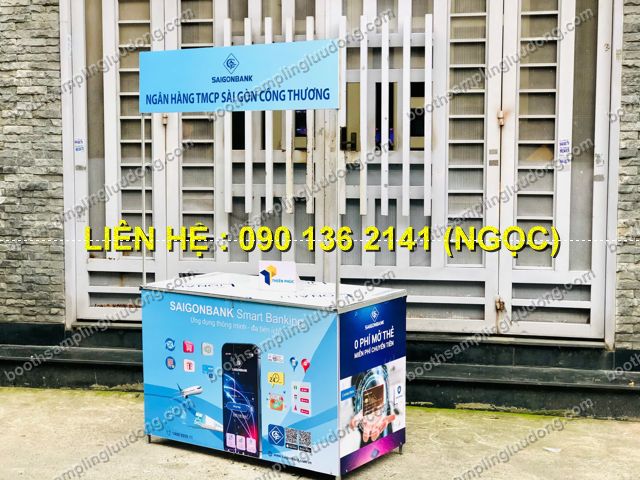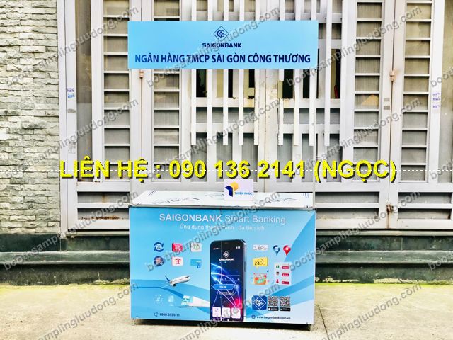 - Xưởng Thiên Phúc chuyên sản xuất quầy sampling quảng cáo, booth bán hàng, bàn giới thiệu sản phẩm, booth mini marketing, quầy phát mẫu thử với đa dạng mẫu mã – kích thước – chất liệu.