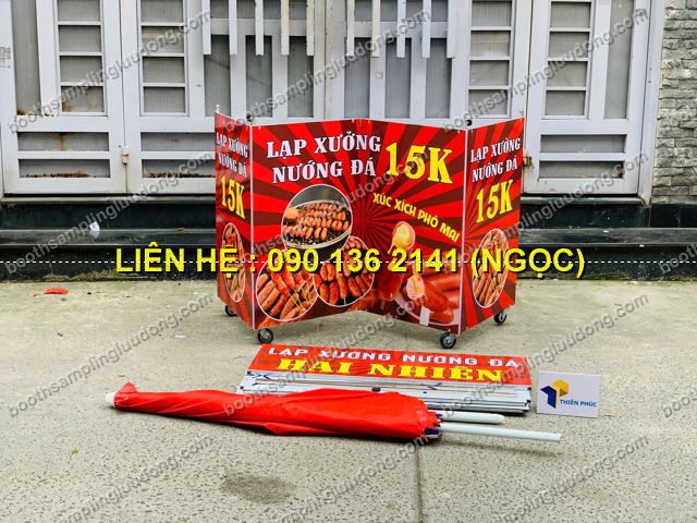 Model : Xe bán lạp xưởng nướng - tủ bán xiên nướng - quầy gấp gọn bán hàng rong