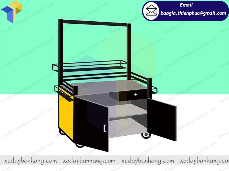 Chọn những chiếc xe có tích hợp hai kệ ly hai bên giúp mở rộng diện tích làm việc. Đây cũng là khu vực để các bạn trưng bày các loại chai pha chế đồ uống và đồ đạc cần thiết khi bán hàng.