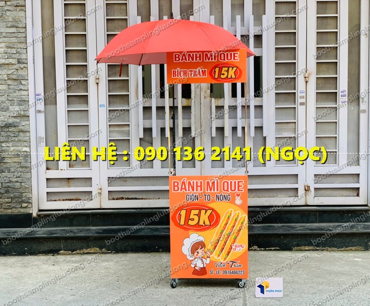 - Để kinh doanh bánh mì que hiệu quả ngoài trời, một chiếc xe vừa đẹp – tiện – che nắng mưa tốt là yếu tố rất quan trọng.