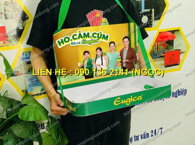 Khay sampling đeo cổ là loại khay chuyên dụng được thiết kế để phát mẫu sản phẩm miễn phí như đồ ăn, nước uống, mỹ phẩm, thực phẩm đóng gói… Nhân viên có thể đeo khay trước ngực hoặc cầm tay, dễ dàng di chuyển trong siêu thị, trung tâm thương mại, hội chợ, sự kiện quảng bá.