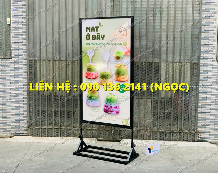 Model : standee quảng cáo ngoài trời, standee hai mặt chịu gió, standee đứng vỉa hè, standee chân sắt đứng