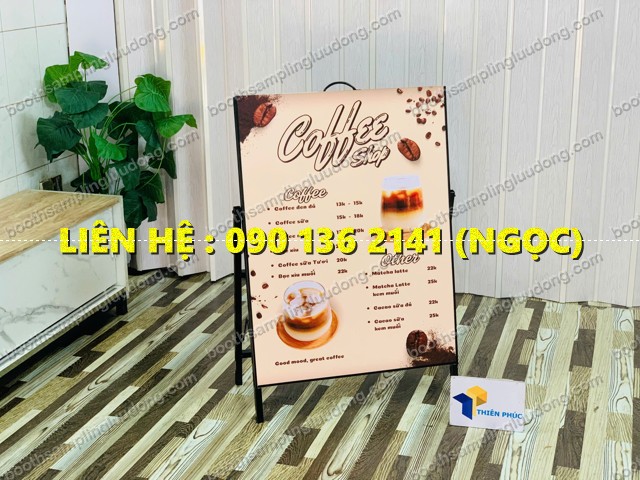 Nhờ thiết kế gọn nhẹ, standee chữ A di động có thể dễ dàng đặt trước cửa hàng hoặc trong không gian trưng bày.