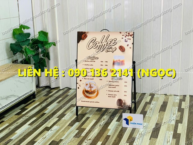 Loại standee chữ A chân sắt xếp gọn thường được sử dụng tại:
