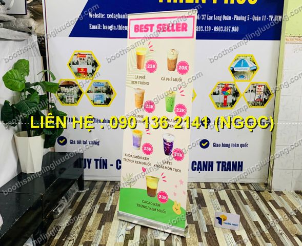 - Standee nhôm cuốn (Roll-Up Banner) là loại standee có thân bằng nhôm nhẹ, kết hợp hệ thống lò xo cuốn giúp thu poster vào hộp nhôm chỉ trong vài giây. Nhờ vậy, poster được bảo vệ tốt hơn, tránh gãy, nhăn hoặc rách khi mang đi nhiều nơi.