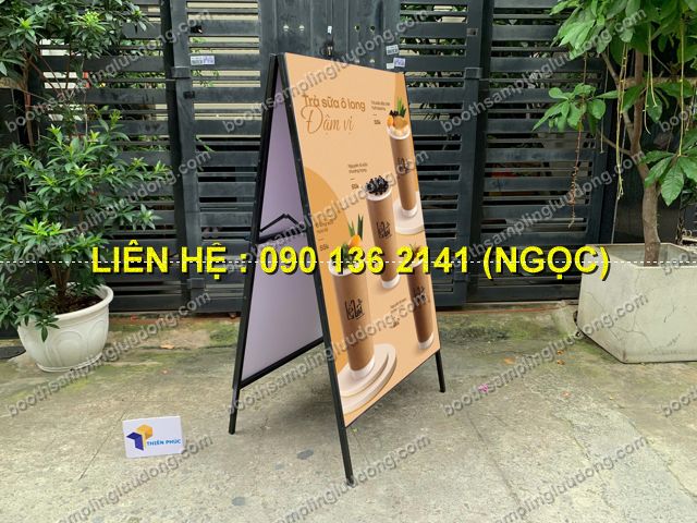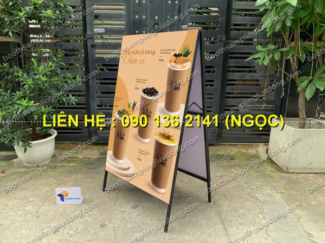 - Với thiết kế khung chữ A chắc chắn, chân sắt có thể gấp gọn, standee này mang lại hiệu quả quảng bá cao mà vẫn tiết kiệm không gian và chi phí.