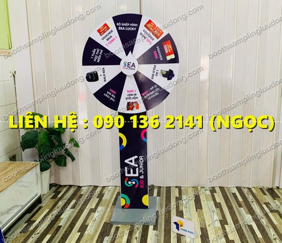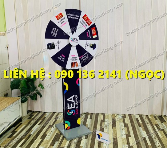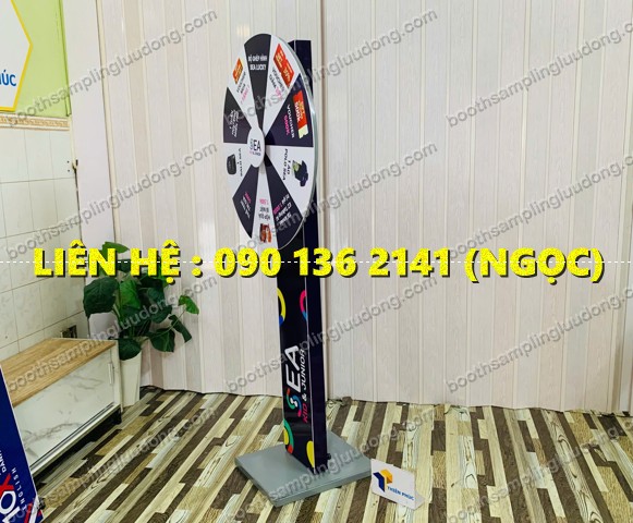 - Vòng quay bảng trụ may mắn nhận thưởng là thiết bị trò chơi tương tác dùng trong các chương trình khuyến mãi, quay số trúng thưởng, mini game sự kiện. Sản phẩm gồm phần bảng quay chia ô phần thưởng, kết hợp chân trụ đứng vững chắc giúp người dùng dễ thao tác.