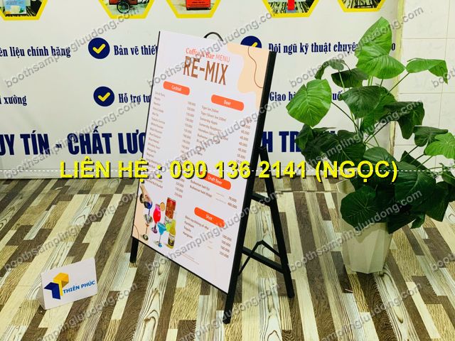 - Nếu bạn đang tìm một giải pháp quảng cáo tiết kiệm – linh hoạt – đẹp mắt, thì standee A menu chân xếp gọn của Thiên Phúc chính là sự lựa chọn hoàn hảo để thu hút khách hàng và tăng doanh số ngay từ cái nhìn đầu tiên!