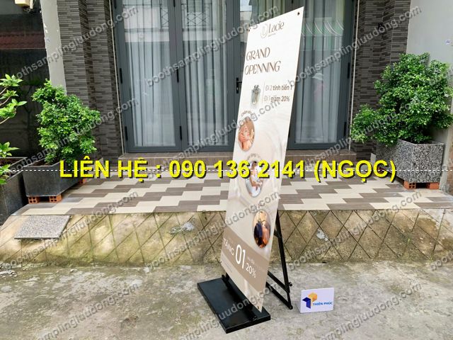 - Với khung sắt sơn đen chắc chắn, thiết kế lắp ráp thông minh, sản phẩm giúp giữ vững hình ảnh quảng cáo trong điều kiện gió mạnh, mưa nhẹ, đồng thời mang lại sự chuyên nghiệp và tính thẩm mỹ cao cho mọi không gian trưng bày.