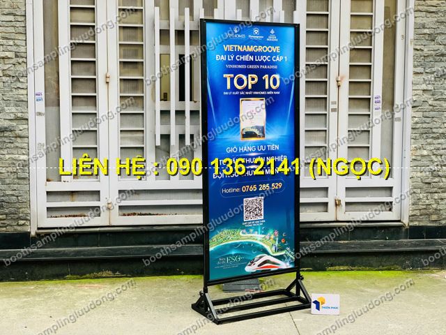 - Dễ tháo lắp, dễ thay nội dung – tiện lợi cho quảng cáo thay đổi theo chương trình khuyến mãi.