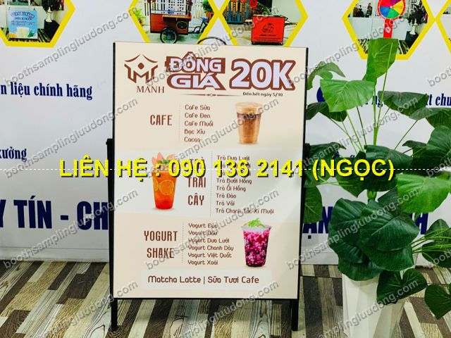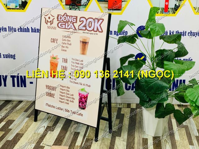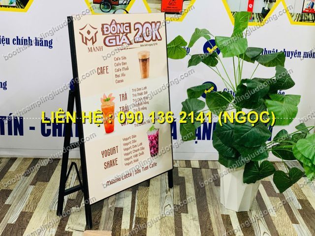 - Thiết kế linh hoạt: Khung chữ A chắc chắn, có thể đặt ở nhiều không gian khác nhau như cửa hàng, hội chợ, siêu thị, sự kiện.