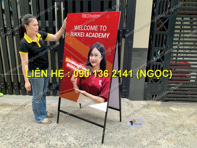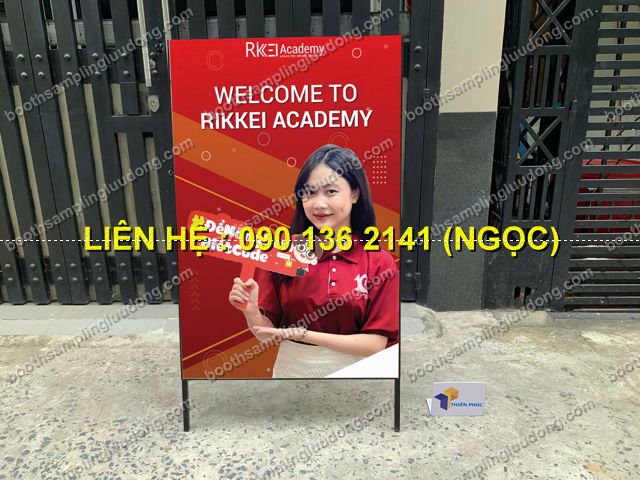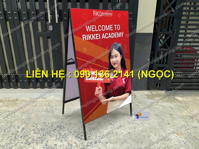- Thiết kế dạng khung chữ A vững chắc, có thể hiển thị nội dung ở cả hai mặt, giúp tăng gấp đôi khả năng hiển thị thông tin và thu hút khách hàng từ mọi hướng nhìn.