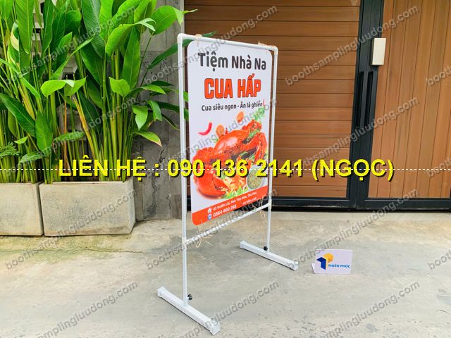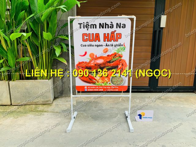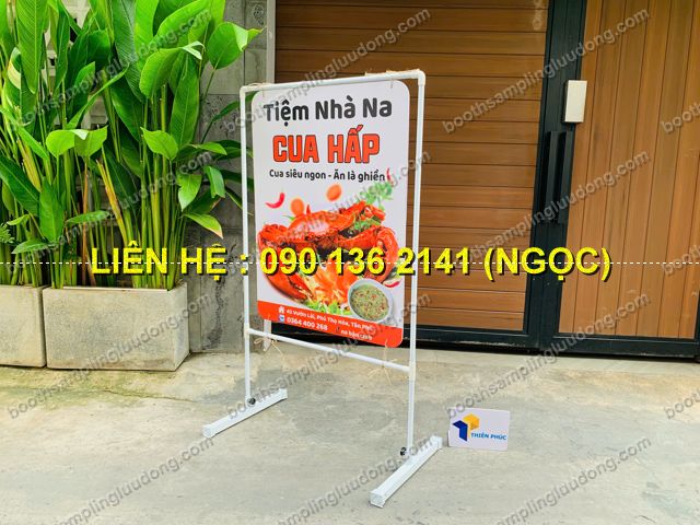 Nhiều mẫu mã khác nhau: standee sắt treo 2 mặt, khung thép không gỉ, standee chân đế..