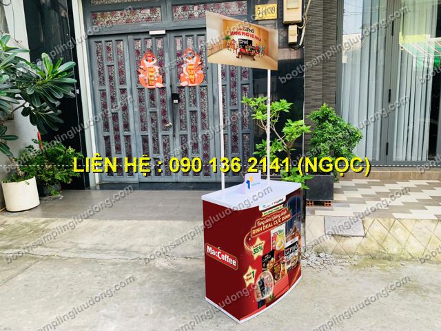 - Quầy nhựa sampling giá rẻ là quầy trưng bày – giới thiệu sản phẩm được thiết kế bằng nhựa cao cấp, trọng lượng nhẹ, dễ lắp ráp và phù hợp sử dụng trong các chương trình dùng thử, phát hàng mẫu, quảng cáo tại siêu thị, cửa hàng hoặc sự kiện ngoài trời.
