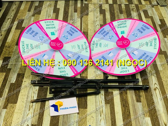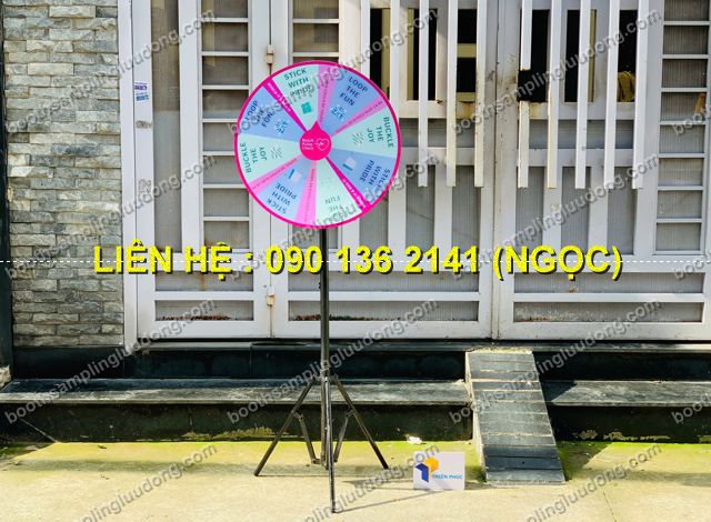 - Vòng xoay được thiết kế với chân xếp linh hoạt, dễ dàng lắp ráp và tháo gọn, thuận tiện cho việc di chuyển giữa nhiều không gian tổ chức khác nhau. Thân vòng có thể làm bằng mica, gỗ hoặc nhựa cao cấp, bề mặt in sắc nét, giúp hiển thị rõ ràng nội dung khuyến mãi, phần thưởng hoặc thương hiệu.