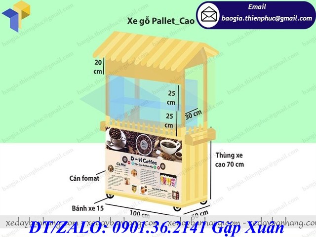 Tên Sản Phẩm: Xe Gỗ Bán Café Vỉa Hè D-H COFFEE