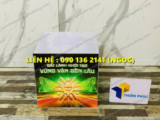 - Ở các chương trình bốc thăm trúng thưởng, tri ân khách hàng, minigame sự kiện, khai trương, thùng mica bỏ phiếu bốc thăm là vật dụng không thể thiếu giúp chương trình diễn ra minh bạch – chuyên nghiệp – tạo niềm tin cho người tham gia.