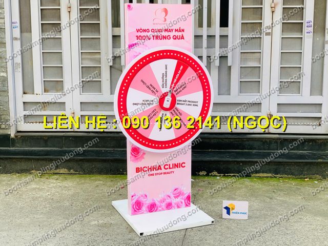 - Xưởng Thiên Phúc chuyên thiết kế, sản xuất và in ấn các loại vòng quay may mắn, bảng trụ trúng thưởng, vòng quay mini để bàn, vòng quay chân trụ theo yêu cầu.