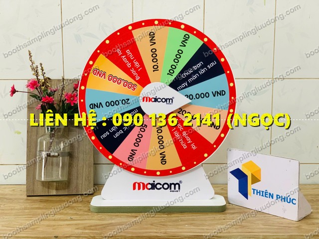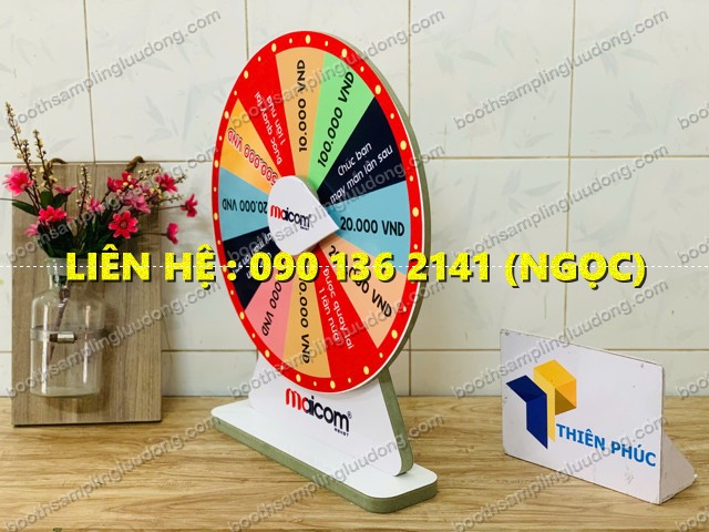 - Một trong những công cụ marketing đơn giản nhưng mang lại hiệu quả bất ngờ chính là vòng quay sự kiện để bàn thân gỗ. Đây là sản phẩm được nhiều cửa hàng, thương hiệu nhỏ, quầy bán hàng và booth quảng cáo lựa chọn để tạo mini game tương tác – tăng sự chú ý – kích thích mua hàng.