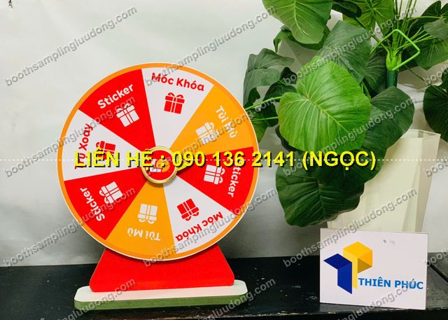 - Vòng xoay để bàn mini gỗ là thiết bị minigame không thể thiếu trong các chương trình khuyến mãi, khai trương, activation marketing, booth sampling hay sự kiện doanh nghiệp.