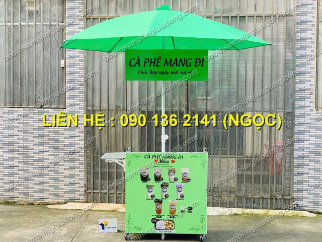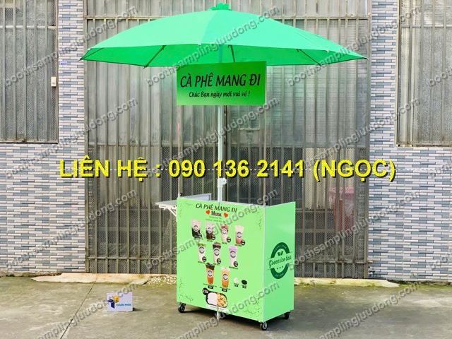 Model : quầy bán nước có dù che - tủ bán nước kèm dù gấp gọn - xe bán nước vỉa hè