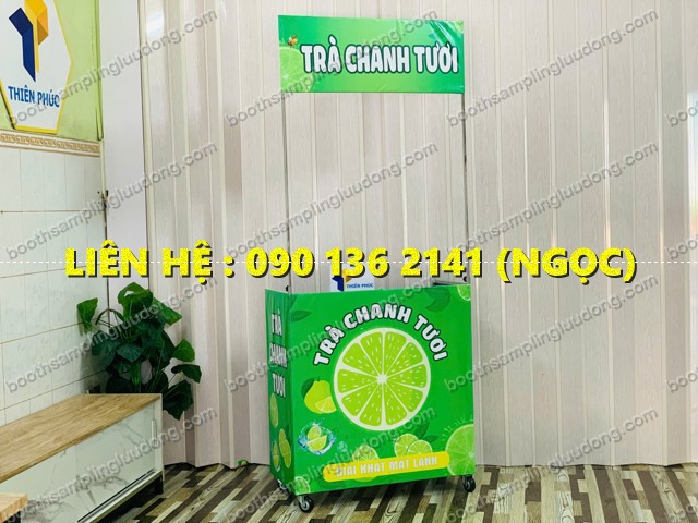 So với bàn nhựa đơn giản, xe bán trà chanh có thiết kế riêng giúp gian hàng gọn gàng và chuyên nghiệp hơn.