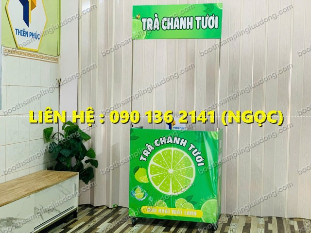 Nhờ vậy khách đi ngang có thể nhìn thấy ngay bạn đang bán trà chanh – trà tắc – trà đào – nước giải khát.