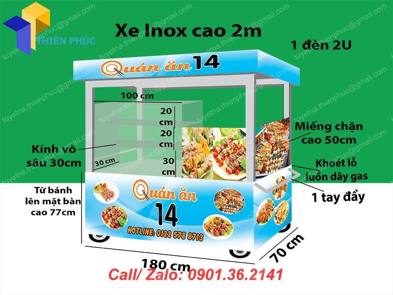Tên Sản Phẩm: Xe inox bán thức ăn nhanh QUÁN ĂN 14