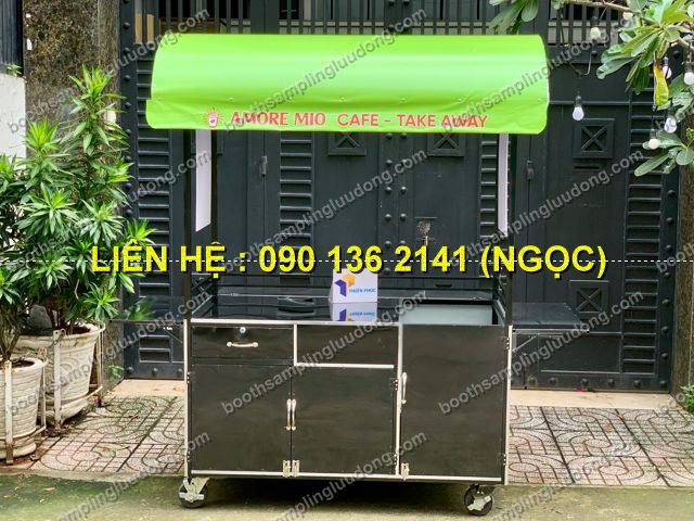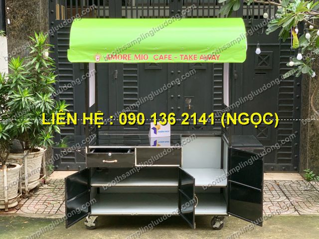 - Di chuyển dễ dàng: Bánh xe xoay linh hoạt, giúp bạn có thể bán cafe ở nhiều địa điểm như công viên, vỉa hè, trường học, khu văn phòng.