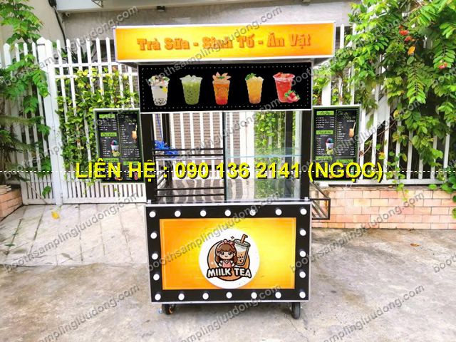 Model : xe bán trà sữa rẻ đẹp - tủ sắt bán trà sữa lưu động - xe bán trà sữa