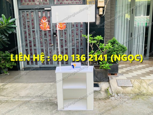 + Hai cây chống nối với logo và phần quầy bằng thép ống sơn trắng