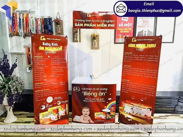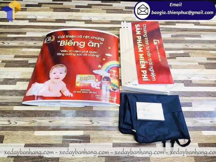 + Phần tấm logo phía trên là 0.3×0.8m chất liệu decal ngoài trời, cắt sát để cán bồi lên bề mặt bàn và tấm logo